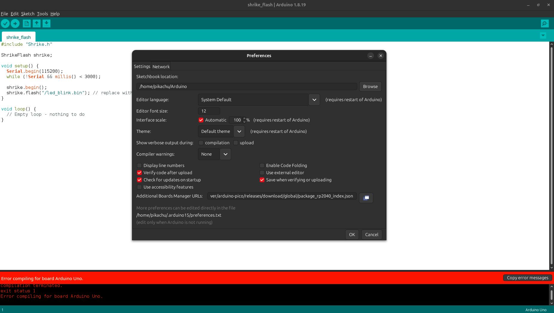 We will follow these steps to setup our arduino IDE for shrike. If you don’t have arduino IDE already ,you can download it from here or if you are using linux(ubuntu)then just run