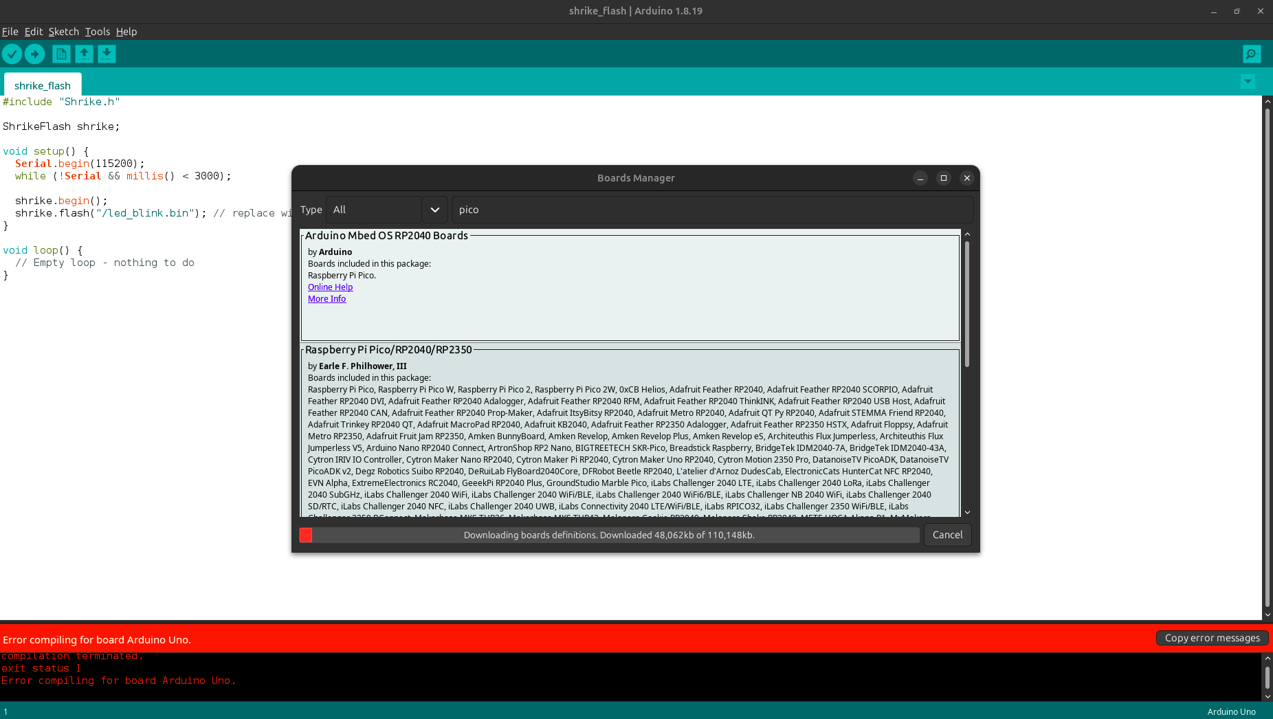 Congratulation you have you arduino IDE and shrike ready to programmed using the Arduino infrastructure.