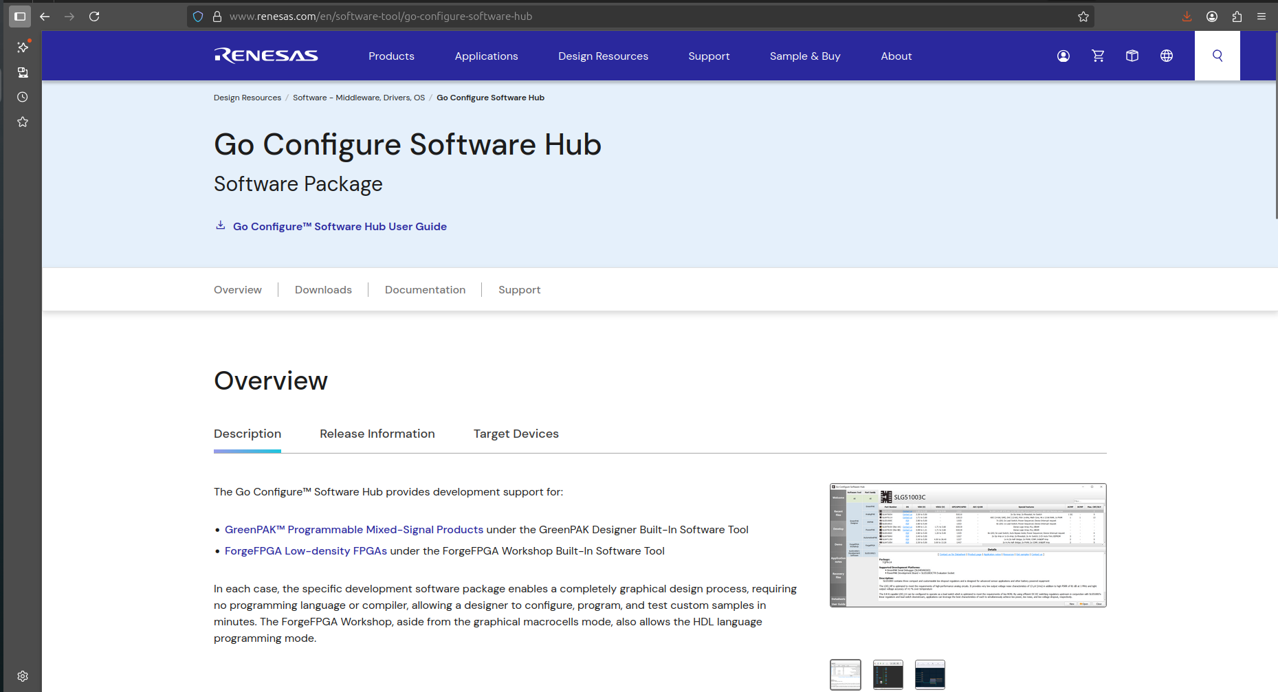 Open the Go Configure Software Hub page on browser of you choice. The page is linked here. If this link is not working then google search the keywords “ renesas go configure hub “ and open the first link. You should land here.