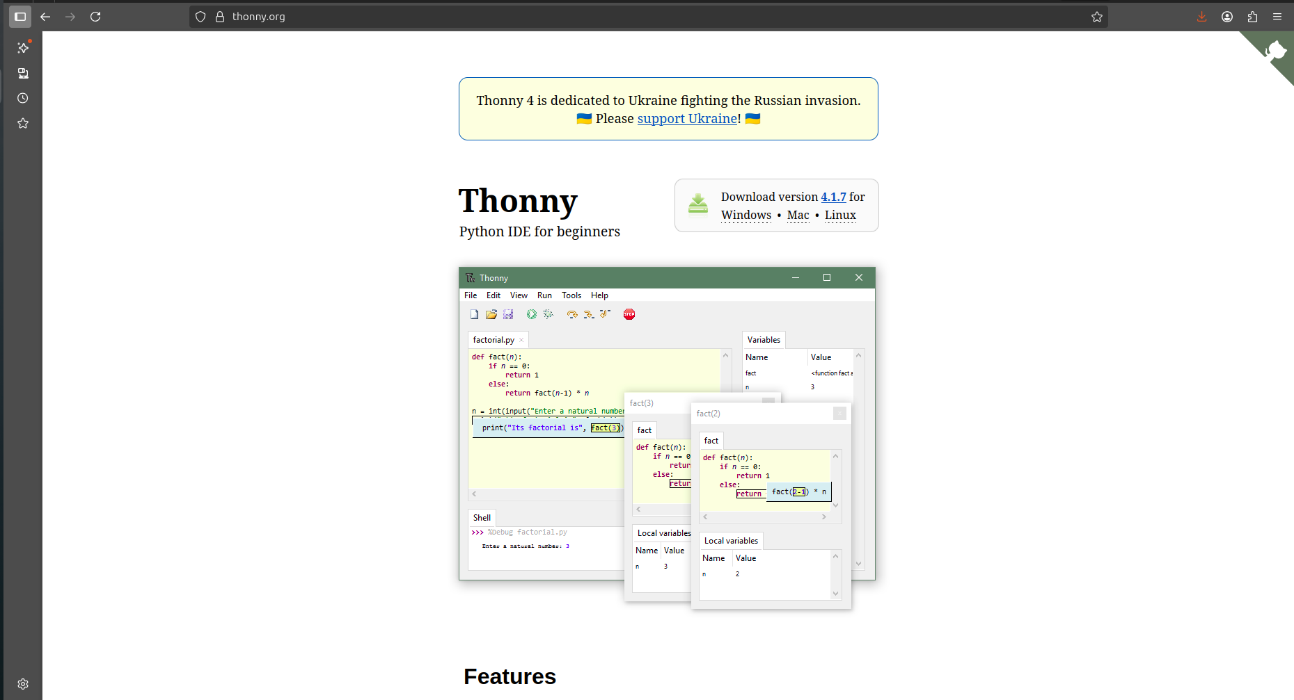 Visit the offical website linked here or just search “thonny” and open first link on search engine.